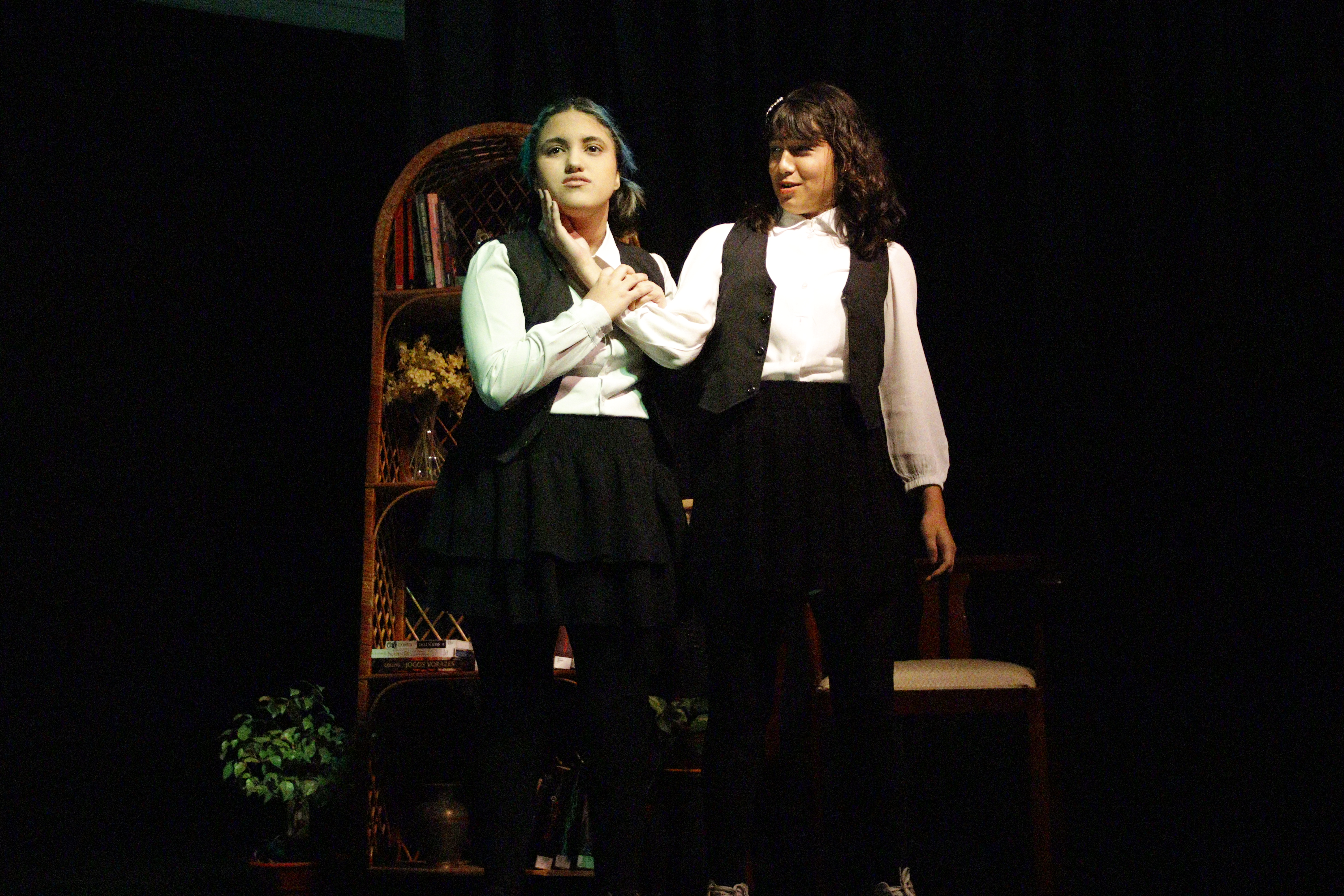 Sob a orientação da professora Andreza, o grupo mergulhou em um processo de pesquisa, leitura e criação cênica, que estimulou o pensamento crítico, o trabalho em equipe e a sensibilidade artística.