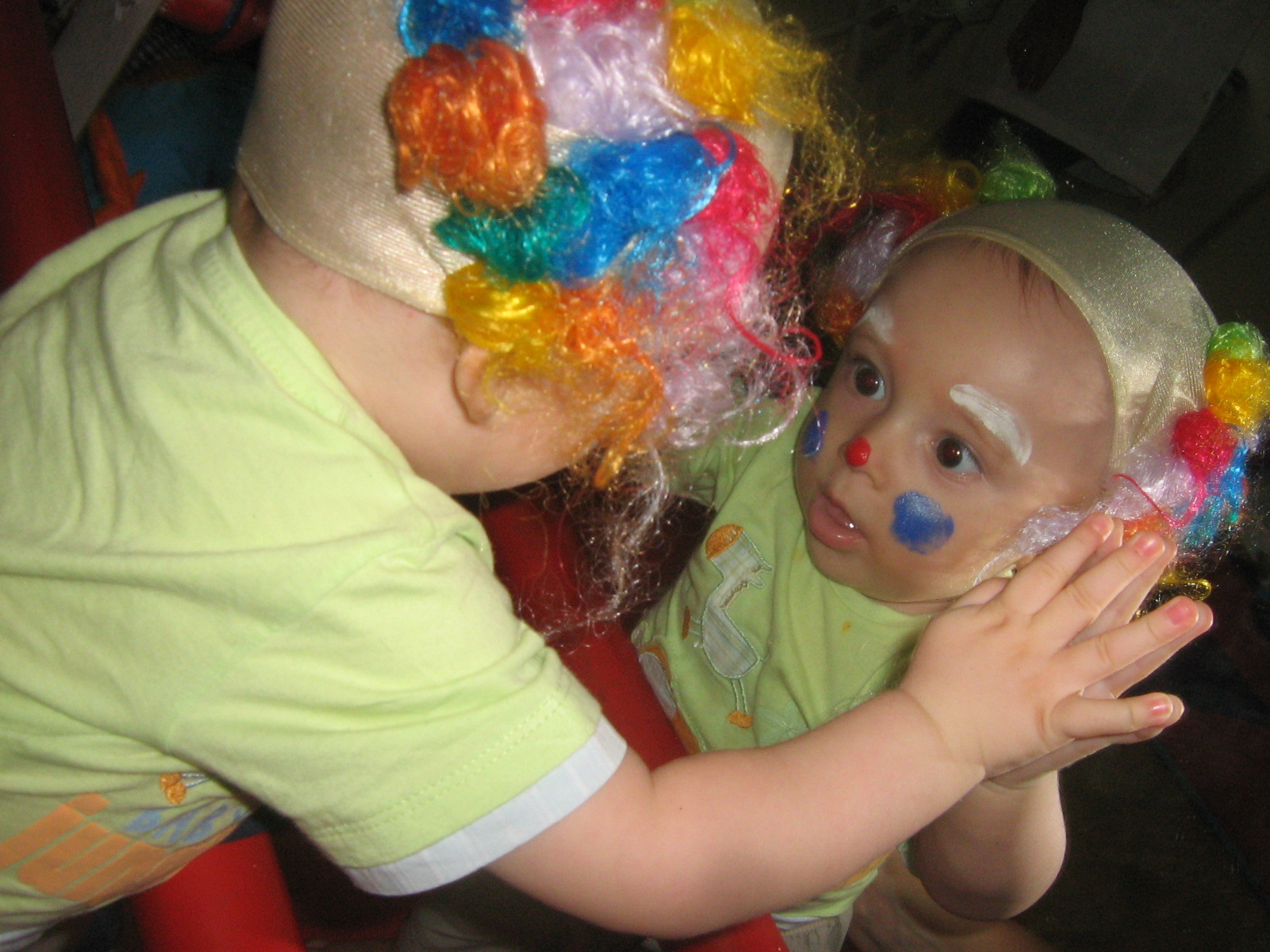 Com a atividade "Vem brincar que o circo já chegou!" as turmas do Berçário A e B se divertiram com balões coloridos e caracterização de palhacinhos. Em frente ao espelho, nossos bebês tiveram a oportunidade de se observar dando início a autodescoberta.
