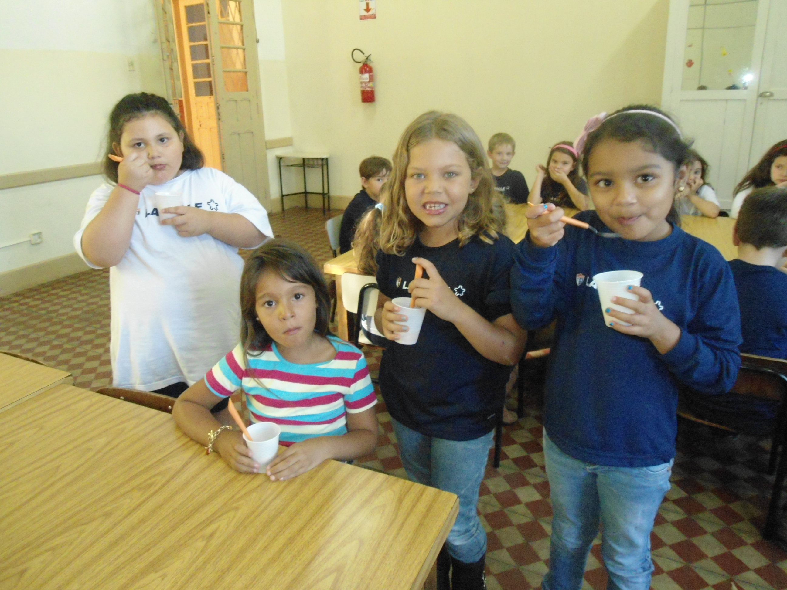 Na sexta-feira passada às turmas do 1º Ano descobriram a importância das frutas para o nosso organismo. Além de saborear, tocar, cheirar, observar o formato e as cores os alunos colocaram a mão na massa, quer dizer, nas frutas, e prepararam uma deliciosa salada de frutas, servida com granola e aveia.