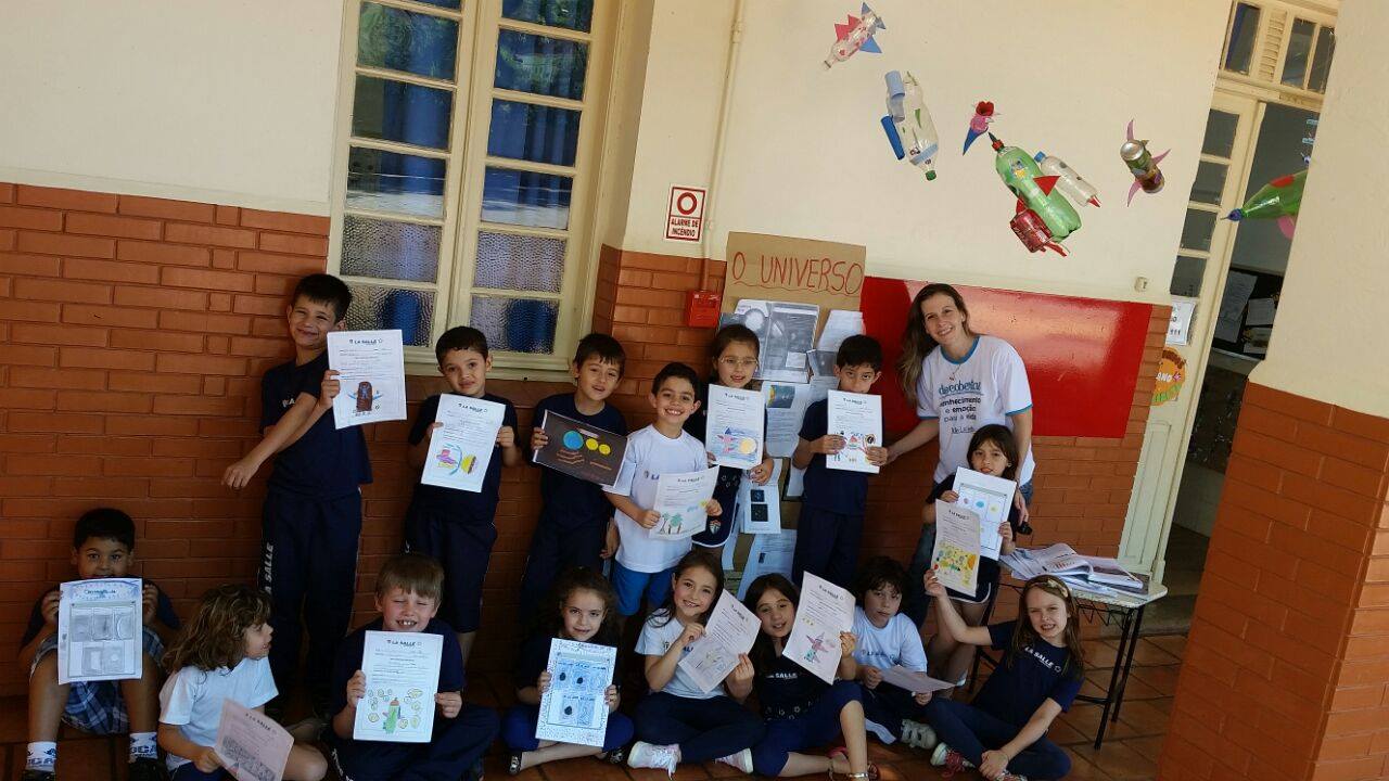 Os alunos da turma 111, orientados pela professora Elizete, encerraram esta semana os estudos sobre o Universo. Durante alguns dias, as crianças viajaram pelo espaço, realizaram pesquisas, leituras, desenhos, conheceram os planetas, as constelações, a Lua e o Sol.