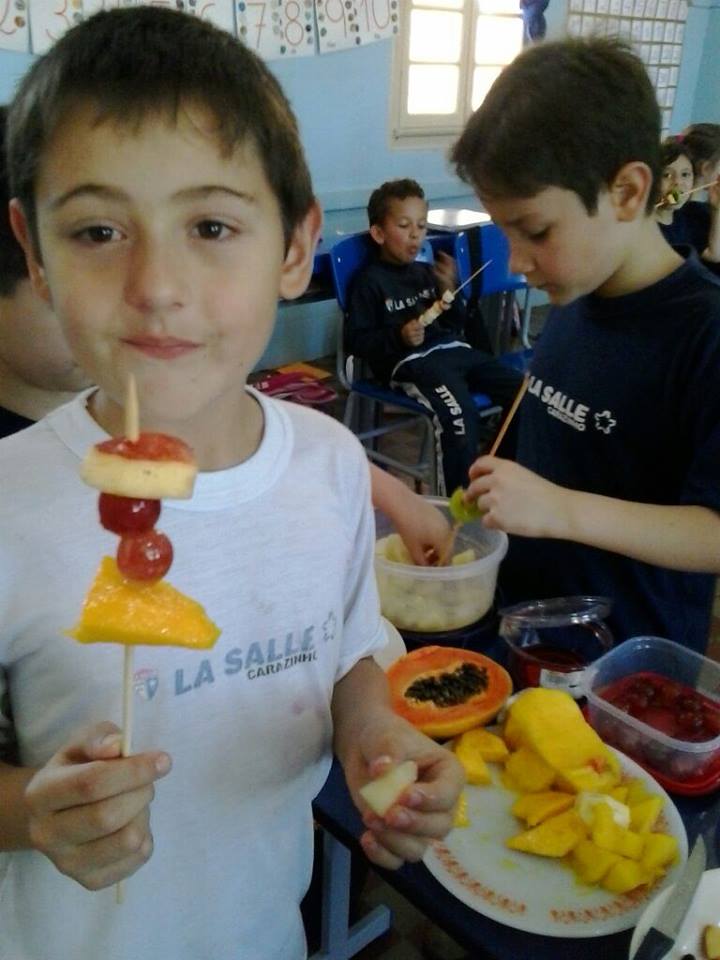 Após pesquisar sobre cada fruta e suas vitaminas os alunos dos 2° anos do Ensino Fundamental realizaram em sala de aula a montagem de espetinhos com frutas trazidas pelos mesmos. Esta aula foi uma delícia!!!!