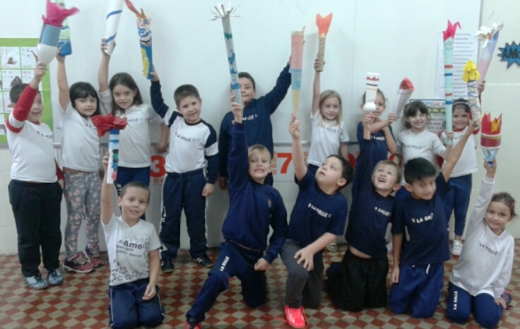 Com a ajuda das famílias, os alunos criaram a Tocha Olímpica Lassalista, usando materiais recicláveis.