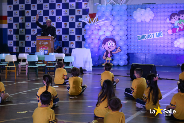 Na última terça-feira, 14 de dezembro, realizamos no Ginásio Escolar, a celebração de encerramento dos alunos da Educação Infantil. Este dia tão especial contou com as palavras do Diretor Ir. Ivan e do Supervisor Pedagógico Fábio, juntamente às apresentações musicais das crianças. Para finalizar, a entrega simbólica do certificado aos alunos, que vestiam a tão desejada camiseta amarela, passaportes para o 1º ano do Ensino Fundamental. Parabéns às famílias por essa troca de ciclos!