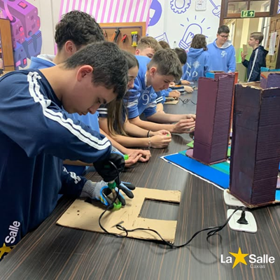 Durante uma atividade prática nas aulas de Ciências, os alunos do 9º ano aplicaram os conceitos teóricos de velocidade média e das leis de Newton para construir um carrinho movido a ar. A iniciativa representou uma valiosa oportunidade de aprendizagem dinâmica, onde os alunos puderam vivenciar, na prática, os fundamentos da Física. Para acessar mais fotos, clique aqui.