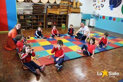 A atividade, orientada pelo professor de Musicalização Marcelo, possibilitou o desenvolvimento de habilidades como atenção, concentração, percepção sonora e rítmica, coordenação motora e também o autocontrole.