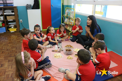 Inspirados pelos nossos valores cristãos, refletimos com as crianças sobre a gratidão e sobre todas as bênçãos que recebemos. Elas compartilharam um lanche, aproveitaram o aprendizado e ainda produziram desenhos expressando seus motivos de agradecer.