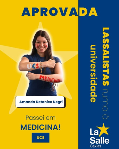 Com alegria, celebramos a conquista da nossa aluna da 3ª série, Amanda Detanico Negri, aprovada em Medicina na UCS! Sua dedicação e busca constante pelo conhecimento fizeram essa vitória acontecer. Que esse seja apenas o início de uma trajetória inspiradora na área da saúde. Parabéns, Amanda!