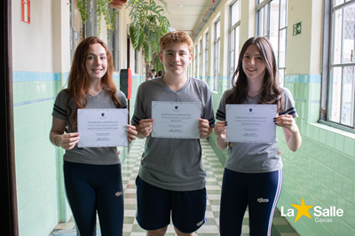 Miguel Comim, Maria Eduarda Zucchetti Lazari e Julia Bolzzoni Ferronato receberam o Certificado de Conclusão de Semestre do AIS Dual Diploma Program, com reconhecimento de Honor Roll, pelo desempenho de excelência no ano letivo de 2025.