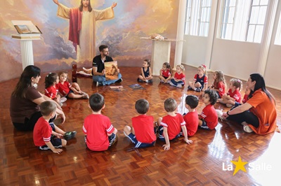 Durante esta semana, a Pastoral e os Grupos de Jovens estão promovendo, com as turmas da Educação Infantil, um momento celebrativo de Páscoa, inspirado no tema pastoral: “Tudo está conectado”.