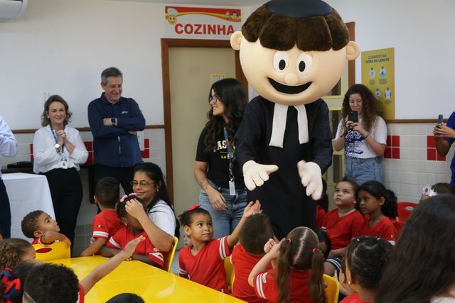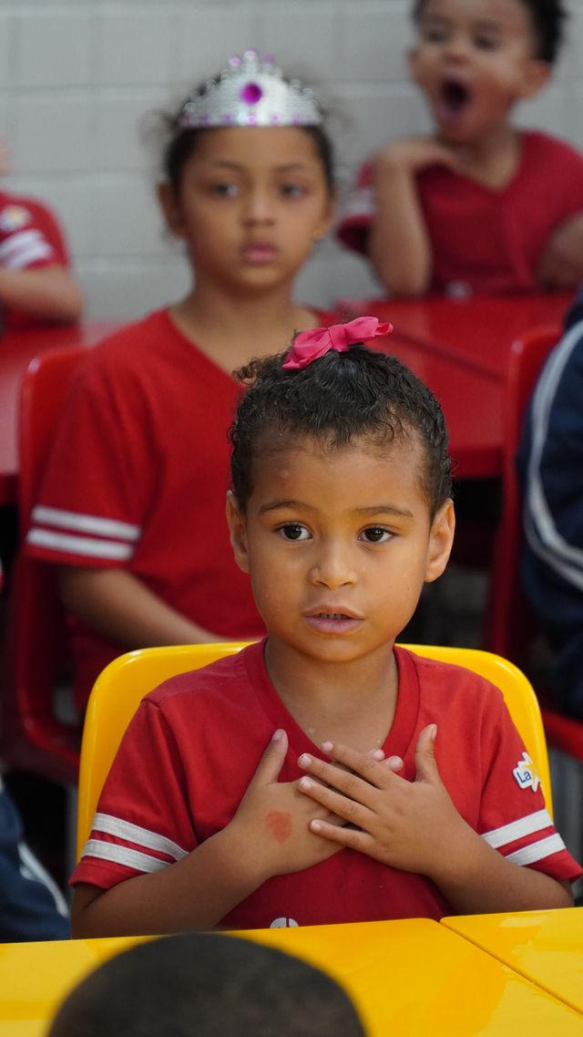Toda a escola se reuniu no refeitório para esperar pela chegada do Ir. Armin e de outros dois convidados: o Ir. Olavo Dalvit, responsável pela Província La Salle Brasil-Chile, e o Ir. Rafael Ceron, Conselheiro Geral do Instituto dos Irmãos das Escolas Cristãs. Mesmo com parte dos visitantes se comunicando em outros idiomas (Irmão Armin em inglês e Irmão Rafael Ceron em espanhol, por ser natural do México), as crianças conseguiram interagir e encantar. Incentivadas pelo diretor, os alunos rezaram o Pai Nosso e a oração do anjo da guarda. Junto da equipe Pastoral do Colégio La Salle Abel, cantaram “Vem, Vem, Vem, Espírito Santo” e o hino lassalista.