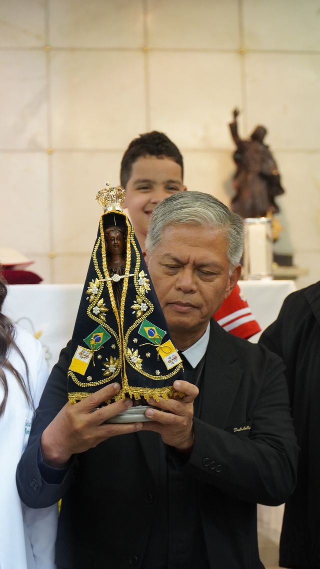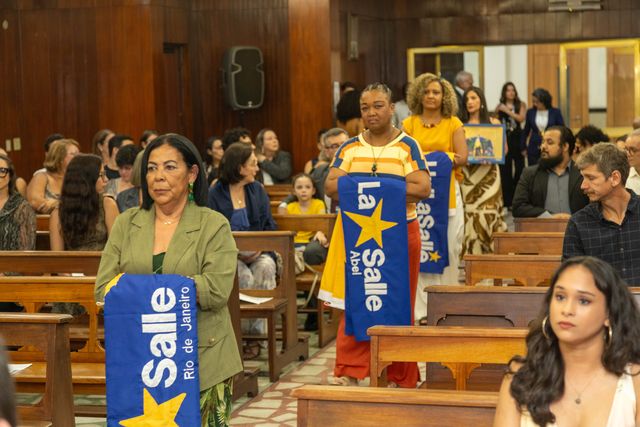 No fim da tarde, a Escola La Salle se fez presente na Missa em Ação de Graças pela concessão do título de Doutor Honoris Causa aos Irmãos Armin Luistro, Olavo Dalvit e Paulo Fossatti, este último reitor por 12 anos da Universidade La Salle, de Canoas. A professora Raquel Romão realizou uma das leituras da missa, celebrada pelo Arcebispo Auxiliar de Niterói, Dom Geraldo de Paula. A secretária escolar Elane Martins carregou a bandeira da escola, símbolo de toda a comunidade educativa, no momento do ofertório. O aluno Lucas Denner, do Pré II, representou a La Salle RJ na entrega da imagem de Nossa Senhora Aparecida, a Padroeira do Brasil, ao Ir. Armin enquanto a coordenadora pedagógica Maviane Lima, leu algumas palavras voltadas a ele.