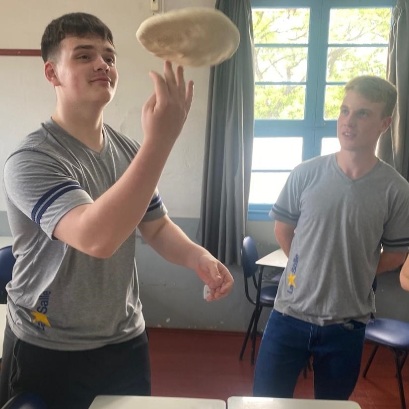 Cada grupo foi responsável por preparar sua própria massa de pizza, observando o processo de fermentação promovido pela levedura. Ao longo da atividade, os alunos acompanharam o crescimento da massa e compreenderam, na prática, como ocorre esse fenômeno biológico. "Durante o metabolismo, a levedura libera dióxido de carbono (CO?) e etanol, sendo o CO? o responsável por fazer a massa crescer", explica a professora Tieli Menzel.