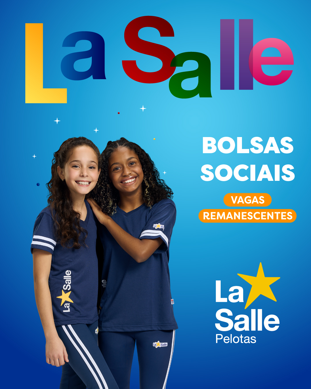 A Sociedade Porvir Científico, para o cumprimento de seus objetivos filantrópicos estatutários, por meio da Escola La Salle Pelotas, inscrita no CNPJ 92.741.990/0035-86, ofertará bolsas de estudo parciais (50%) ou integrais (100%) a alunos matriculados no ano letivo de 2026, com aplicação sobre o valor da anuidade escolar.