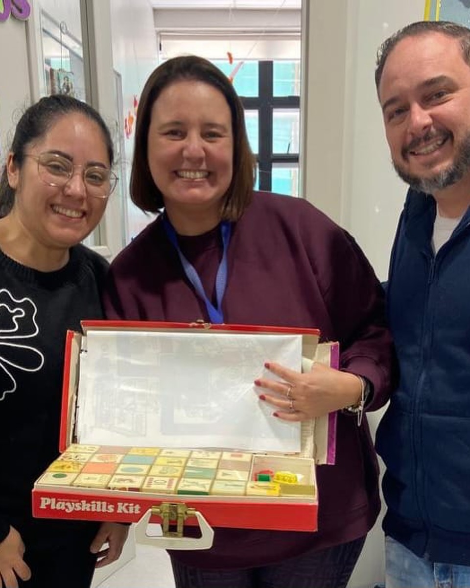 A família da estudante Sophia presenteou nossa teacher com um super jogo de tabuleiro da década de 70, que pertencia à bisavó dela. A turminha se divertiu muito, trabalhando vocabulário de cores e transportes a partir da dinâmica proposta com o material.