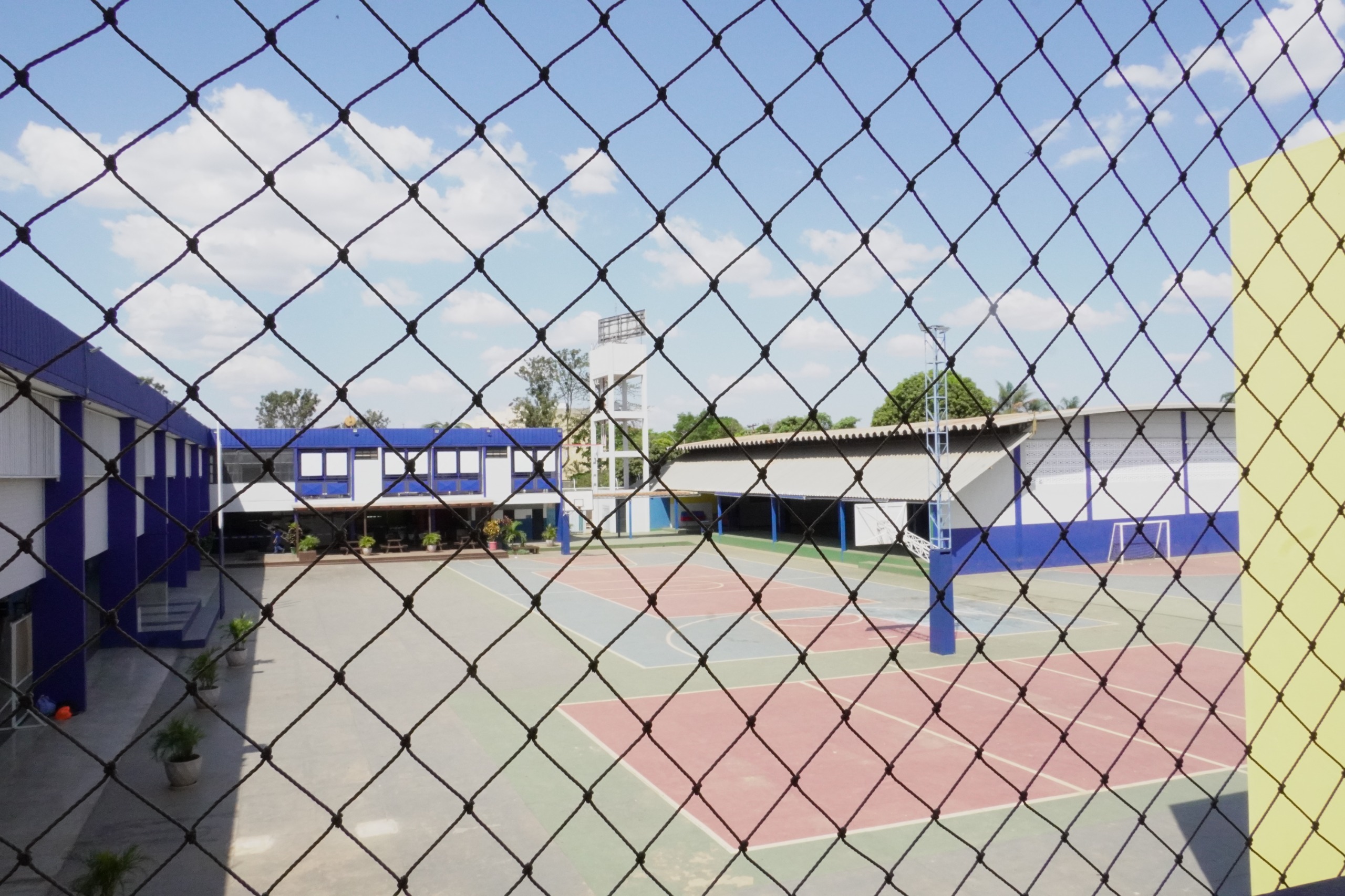Parque coberto para as crinaças, com grama sintética, todo cercado para maior segurança.