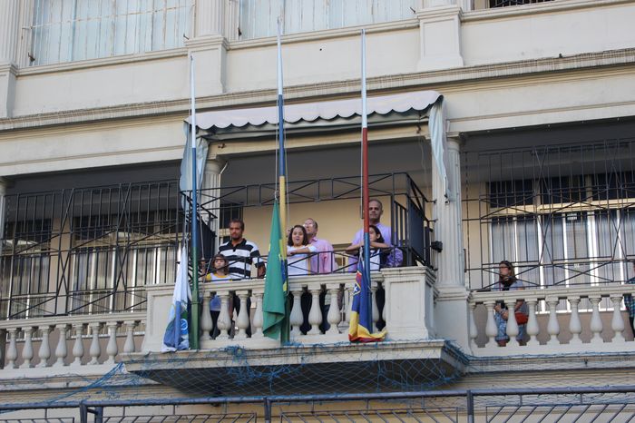 Já no Ensino Médio, os estudantes do 3º ano E, Thiago Cavalcanti e Isabela Cunha, ficaram responsáveis por hastear as bandeiras do Brasil e do La Salle Abel, respectivamente, durante a execução do Hino. Os alunos estavam acompanhados por colegas que participaram da Cerimônia do Hino em outras ocasiões deste ano, são eles: Vanessa Rocha (2° A) e Julio Feder (2° B), Flavio Valle (1° G) e Beatriz Gripp (1° G), Matheus Latini (1° F) e Luiza de Sá (1° F), Lucas Pacheco (1° E) e Luiza Hausen (1° E), José Eduardo Cury (3° C) e Beatriz Dias (3° B), Lara Lima Motta (1° H) e Ian Guerra (1° H), Raphael Jardim (3° D) e Gabriela Sobrosa (3° D), Débora Felix (3º C) e João Vitor Hugo (3º C).
