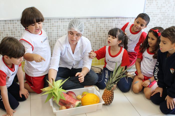 A profissional convidada também exibiu algumas frutas e, mais uma vez, as crianças mostraram-se bastante participativas, respondendo rapidamente o nome de cada uma. E, após o bate-papo, chegou a hora da criançada almoçar. Uma refeição bem colorida e saudável foi servida, dando muita energia para retornarem aos estudos.