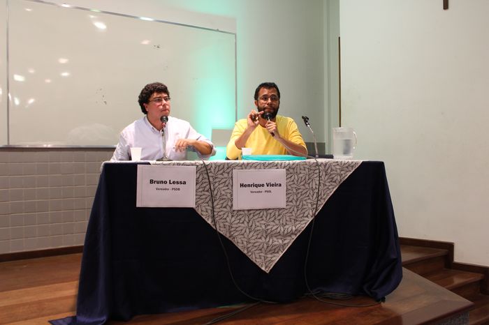 Na última sexta-feira, dia 11 de setembro, a Comunidade Estudantil do La Salle Abel (CELS) promoveu um debate com os vereadores Bruno Lessa (PSDB) e Henrique Vieira (PSOL), no auditório do EM. Durante o evento, foram discutidos temas como “Uber” e “redução da maioridade penal”, escolhidos após votação da plateia. Voltado aos alunos dos Ensinos Fundamental e Médio e também do Unilasalle, o projeto “Debate Político” teve como objetivo desenvolver a consciência política e crítica dos estudantes.