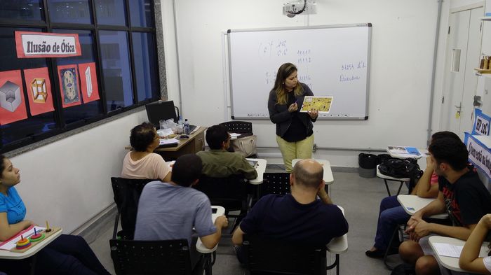 A professora de Matemática do La Salle Abel Paula Monteiro fez com que as atividades desenvolvidas na Oficina de Matemática do EF II chegassem ao meio universitário. No dia 17 de novembro, a docente apresentou na Universidade Federal do Estado do Rio de Janeiro (UNIRIO), aos licenciandos da disciplina de Laboratório de Ensino da Matemática, ministrada pela prof.ª Bruna Moustapha, alguns exemplos do que vem sendo realizado na atividade extraclasse do colégio.