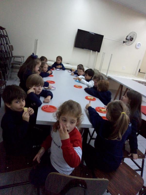O que é melhor: ouvir uma boa história ou degustar uma boa refeição? Na última semana, as turminhas do Pré I escolheram, sabiamente, as duas opções! Na Sala Multiuso/APM, as professoras Andréia, Francele e Sharlote contaram a história “Rinocerontes Não Comem Panquecas”, da autora Anna Kemp, mostrando os ingredientes e o modo de preparo de deliciosas panquecas. A criançada então botou a mão na massa auxiliando as professoras na cozinha, recheando as panquecas com chocolate e morango e saboreando o prato pronto. Confira nas imagens!