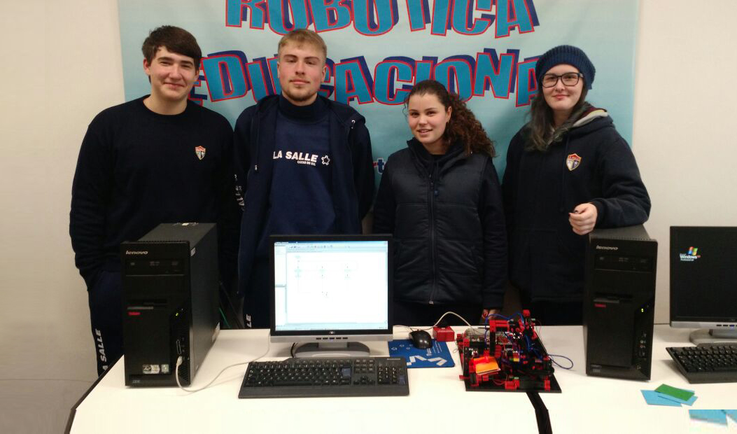 Os alunos do módulo avançado de Robótica Educacional surpreenderam mais uma vez. Unindo os componentes pneumáticos, sensores de cor e uma excelente programação, Arthur Pretto, Gabriel Severo, Lara Almeida, Leonardo Bozzetto e Luiza Cioatto, construíram um robô que distribui cartas na mesa e ainda às separa por cores. A tarefa foi complexa e exigiu dedicação total nos encontros durante um mês inteiro, mas o resultado não deixou dúvidas: todo o esforço investido retornou como muita satisfação ao grupo. No vídeo, o protótipo em ação!
