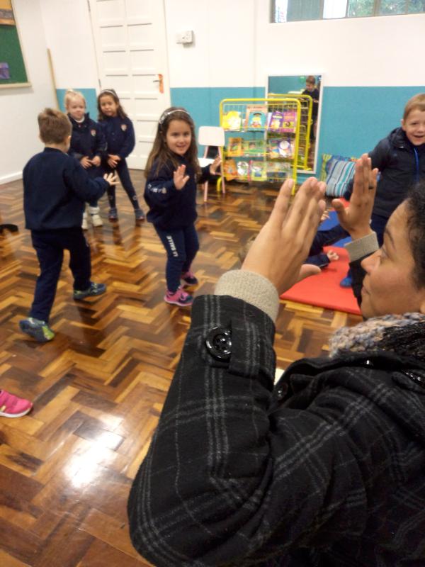 Os sons e os ritmos dos instrumentos musicais cativam cada vez mais as turminhas do Pré I. Na aula da professora Mariane, os alunos aprendem a fazer música de maneiras inusitadas, como com a orquestra. Uma criança representa o maestro ou a maestrina e faz movimentos com os braços: mãos abertas para a orquestra tocar e mãos fechadas para a orquestra parar; levantar ou abaixar os braços mudam a intensidade do som. Experimentar todos os instrumentos e dançar a música tocada pela professora também divertem os pequenos. Confira na galeria estes momentos e, no vídeo em destaque, a Turma 1 em ação!