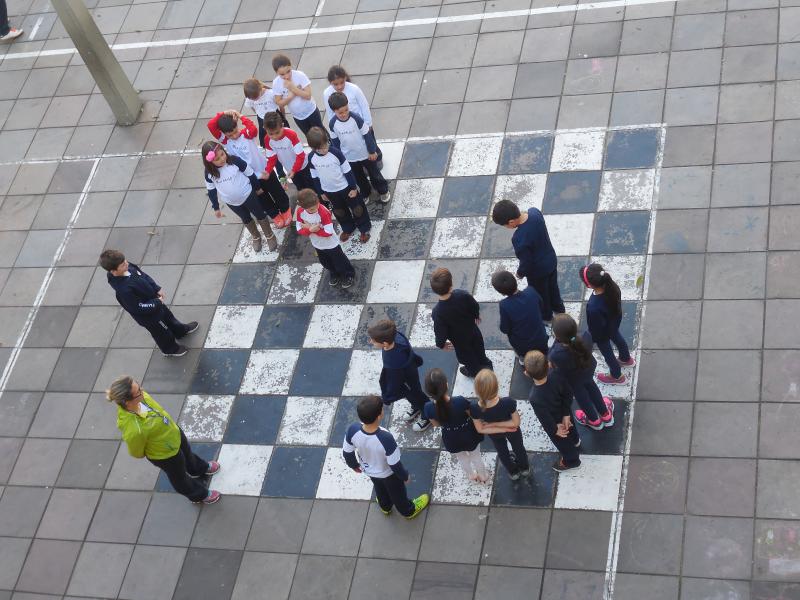 A versatilidade do Projeto MenteInovadora é grande. As atividades da plataforma Mind Lab podem ser experimentadas com peças sólidas, virtualmente pela internet e até mesmo com os alunos como parte do jogo. As turmas de 2° ano do Ensino Fundamental, norteadas pelas professoras Carina, Liege e Viviane, brincaram com as Damas Chinesas no grande tabuleiro desenhado no pátio da escola e enquanto metade dos grupos atuava como jogadores, a outra metade representava as próprias peças. Os jogadores e as peças planejavam e discutiam cada movimento, desenvolvendo o trabalho em equipe, a liderança e a capacidade de resolver problemas, consideradas habilidades essenciais no projeto. Confira!