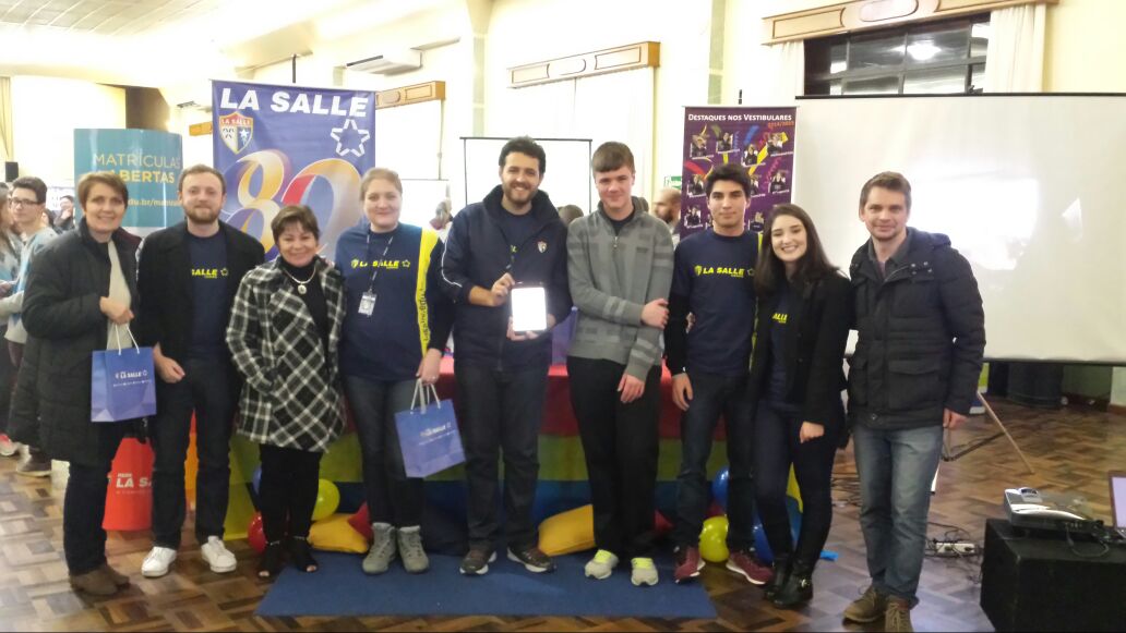 O La Salle Caxias participou, na noite da última segunda-feira, da III Feira do Ensino Médio de Flores da Cunha. O evento foi destinado aos alunos concluintes do Ensino Fundamental e seus responsáveis, iniciando com uma palestra da psicóloga Ana Cecília Santiago sobre orientação vocacional. Após, as escolas presentes foram chamadas ao palco para mostrar seus principais diferenciais e a delegação lassalista mostrou sinergia e dedicação na sua apresentação, contando com depoimentos do aluno Leonardo Bozzetto e dos ex-alunos Gabriel Dall’Alba (concluinte de 2013), Gabriel Aver e Louise Cerbaro (concluintes de 2014). No final do evento, o stand da Escola recebeu parte dos 300 visitantes para demonstrar uma experiência química, manusear os iPads utilizados em sala de aula e assistir a alguns dos principais projetos desenvolvidos no Ensino Médio, como o Espaço Interativo Multidisciplinar.