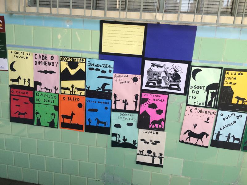Entre as muitas manifestações da cultura brasileira, a Literatura de Cordel destaca-se pelo seu estilo próprio. Utilizando rimas simples em sua composição, o Cordel é muitas vezes registrado em folhetos impressos e ilustrado com xilogravuras. Partindo deste conceito, as turmas de 7° ano produziram suas próprias histórias, escrevendo os textos e criando a arte do seu folheto nas aulas de Língua Portuguesa. Concluindo o trabalho, expuseram suas obras no pátio da Escola. Confira!