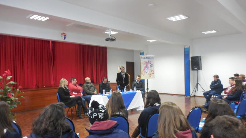 Na última terça-feira, dia 23, o La Salle Caxias realizou a terceira edição do Seminário das Profissões. O evento, direcionado às turmas de 3ª série do Ensino Médio, teve como objetivo mostrar um pouco da realidade do mercado de trabalho e do Ensino Superior, através de conversas com profissionais de destaque e representantes da Universidade de Caxias do Sul. Participaram do encontro Rodrigo Lopes (ex-aluno e jornalista no Jornal Pioneiro), Volnei Sebben (engenheiro civil, fundador da Construesse Empreendimentos e Presidente do SINDUSCON), Arielson Milani (médico cirurgião plástico), Prof. José Artur Martins (representando Marcelo Rossato, pró-reitor da Universidade de Caxias do Sul) e Fabíola Sartori (assessora do setor internacional da UCS).