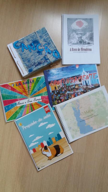 Já imaginou se as propagandas também aparecessem nos livros? Essa foi a proposta do projeto “Recriação Literária”, desenvolvido pela 3ª série do Ensino Médio, durante as aulas de Literatura. A partir da leitura da obra “Chapeuzinho (Anuncie aqui!) Vermelho”, de Alain Serres, a professora Raissa orientou as turmas a confeccionarem livros contemplando uma poesia da primeira ou da segunda fase do modernismo brasileiro. A tarefa consistia em manter a obra original, mas incluir propagandas relacionadas com os textos. Assim, os alunos esbanjaram criatividade na execução dos trabalhos, buscando alternativas para suas criações e incluindo capa de couro, colagem com barbantes e até uma concha marinha na montagem de seus livros. Aprecie!