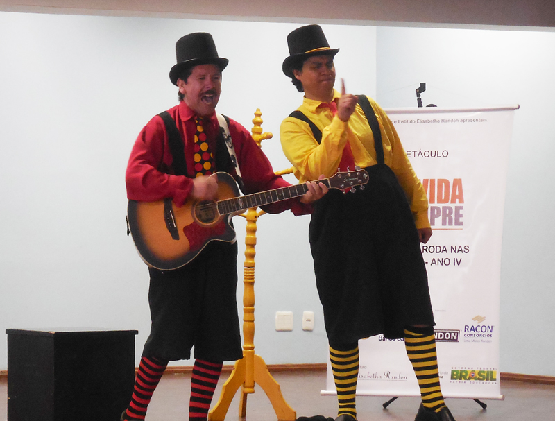 As artes cênicas animaram e instruíram os alunos do La Salle Caxias na manhã de hoje. A equipe da “Tem Gente Teatrando” encenou a peça “Espetáculo Vida Sempre – A Cultura Roda nas Estradas – ano IV” para as turmas de 8° ano do Ensino Fundamental à 3ª série do Ensino Médio. O projeto, realizado pelo Instituto Elisabetha Randon, busca educar motoristas e pedestres para a segurança do trânsito, abordando, entre outros assuntos, a prevenção de acidentes e o consumo de álcool. Confira momentos desta apresentação nas fotos!