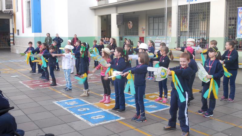 Na sequência do Setembro Cívico, as turmas de 3° ano do Ensino Fundamental realizaram, na última terça-feira, a sua apresentação. Interpretando a canção “Se ligaê”, uma das mais tocadas durante as Olimpíadas do Rio de Janeiro, os alunos foram ao pé da letra para destacar o brasileiro que acorda e vai à luta, é carioca, gaúcho e mineiro e que com muito esforço chega lá. De braços abertos a todos, dançaram no ritmo da música e cantaram com familiares e colegas. Confira!