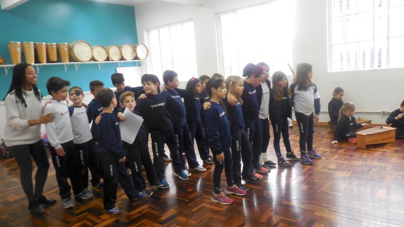 As aulas de música das turmas de 2° ano do Ensino Fundamental expandiram seus horizontes com a ajuda do folclore e do teatro. Orientados pela professora Mariane, os alunos conheceram a música folclórica “Quem te ensinou a nadar?” e criaram uma encenação teatral para apresentar “A História do Marinheiro”. Com as turmas de Educação Infantil na plateia, as crianças interpretaram suas personagens e tocaram e cantaram a música trabalhada. A plateia aplaudiu de pé!