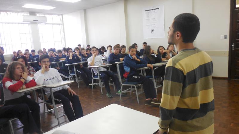 Hoje pela manhã, o La Salle Caxias recebeu o ex-aluno, jornalista e autor Lucas Borba. Exemplo de superação, Lucas, deficiente visual, completou o Ensino Médio em 2010 e desde então escreveu o conto “Fuga” e, no ano passado, o livro “O Pássaro Refletól”. A trama do livro foi tema das aulas de Literatura das turmas 101 e 102 e o principal assunto do encontro de hoje, em que os alunos puderam questionar o autor e descobrir mais detalhes sobre a produção do livro. Confira as fotos!