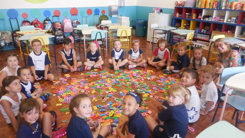 Anualmente, o projeto “Todo mundo tem um nome” traz descobertas e sentimentos inéditos às turmas do Pré II. Através de atividades específicas, as professoras Adriana, Andréia e Carla propiciaram momentos de autoconhecimento aos seus alunos, levando-os a compreender que eles têm um nome, uma identidade e que fazem parte de conjuntos de pessoas em suas casas, na escola e na comunidade. A principal atividade aconteceu na Sala dos Espelhos, onde as turmas foram reunidas e cada aluno recebeu um crachá com um nome que não era o seu; após, auxiliados pelas professoras, cada um encontrou o dono do seu crachá, formando então um grande varal de nomes. Já no pátio, as turmas trabalharam com os nomes na roda cantada e escrevendo-os com giz no chão, estimulando também a escrita. Por fim, brincaram em sala de aula com o alfabeto móvel, montando seus nomes com letras coloridas. Aprecie!