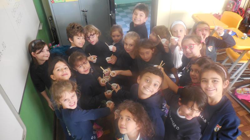 A culinária típica das Festas Juninas é um atrativo à parte no mês que comemora Santo Antônio, São João e São Pedro. Assim, aproximando-se do final de junho, as turmas de 1° ano do Ensino Fundamental fizeram um doce de paçoca. Sendo uma receita de poucos ingredientes e fácil preparo, todos os alunos colocaram a mão na massa, ajudando as professoras Carina, Gabriela e Renata na mistura da guloseima. Aprecie!