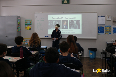In this activity, students developed oral communication skills in English by presenting biographies of historical personalities, as well as exercising creativity and artistic expression through the production of digital posters. The proposal integrated language, art and historical knowledge, promoting the use of the English language in meaningful contexts, as well as stimulating autonomy, collaboration and the students' cultural repertoire.