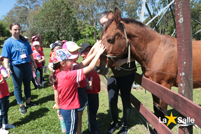 Também puderam fazer carinho em cavalos, pôneis, ovelhas e lindos coelhinhos, conheceram um ovo de avestruz, participaram de uma trilha ecológica com dicas de preservação do meio ambiente e, para encerrar com muita emoção, embarcaram em um passeio de carretão pelo pomar, que rendeu muitas gargalhadas!