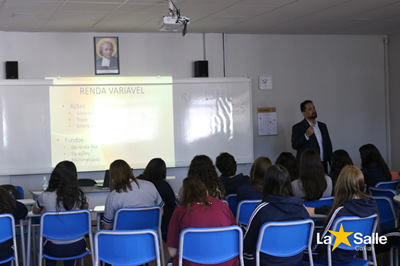 No dia 25 de novembro os alunos da 1° série do Ensino Médio tiveram uma palestra sobre Planejamento Financeiro. O profissional Flávio Duera, sócio na FAMI Capital, uma empresa credenciada a XP, foi a pessoa que buscou despertar nos estudantes a importância de guardar dinheiro desde cedo, buscando uma aposentadoria precoce e independência financeira.