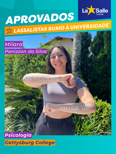 Nossa ex-aluna Milara Panizzon da Silva acaba de conquistar uma aprovação internacional de grande destaque: ela foi aceita no Gettysburg College, nos Estados Unidos, onde cursará Psicologia.