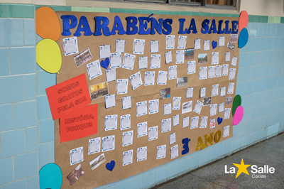 Nossos estudantes do 3º ano deram um show de criatividade ao criar um mural cheio de mensagens especiais em homenagem aos 90 anos do Colégio La Salle Caxias. Cada palavra expressa gratidão, orgulho e o sentimento de fazer parte dessa trajetória construída com valores, amizade e conhecimento.
