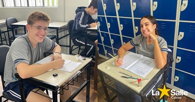 Nos dias 14 e 21, os estudantes da 2ª série do Ensino Médio do Colégio La Salle Caxias participaram de um simulado no modelo ENEM, vivenciando uma experiência próxima à realidade do exame. A ação teve como objetivo avaliar conhecimentos e desenvolver habilidades essenciais, como interpretação, resolução de problemas e gestão do tempo.