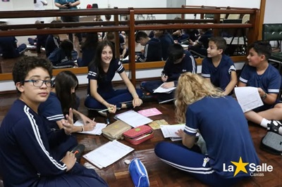 Os alunos do 6º ano participaram de uma atividade de rotação por estações sobre o planeta Terra, tornando o aprendizado mais dinâmico e significativo. Durante a aula, as turmas passaram por diferentes estações, explorando as evidências da esfericidade da Terra, as suas camadas internas e externas, os tipos de rochas e os fósseis. A proposta incentivou a curiosidade, o trabalho em equipe e a construção do conhecimento de forma ativa e colaborativa.