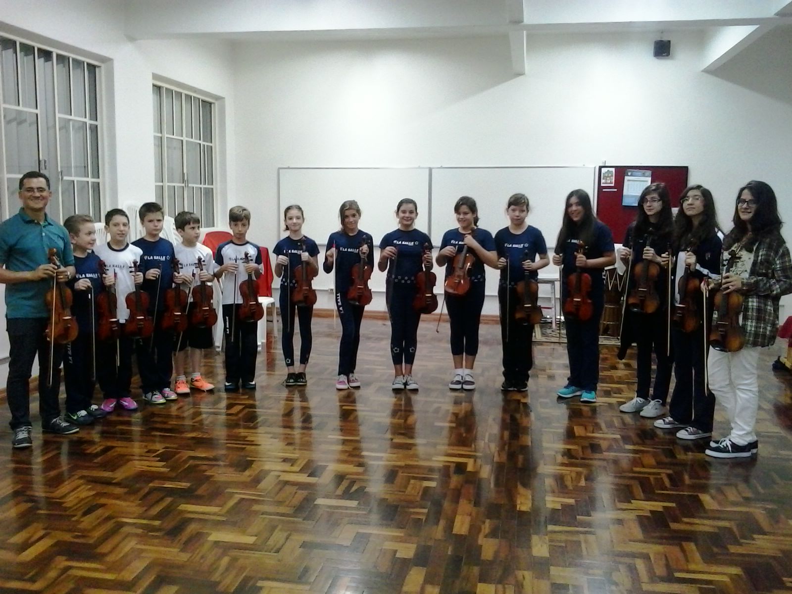 O La Salle Caxias e a Associação de Pais e Mestres, em parceria com o Projeto Mais Música, oferecem uma nova atividade extraclasse: as Oficinas de Instrumentos de Cordas. Vinte e dois alunos selecionados, de 5º a 9º ano, participam semanalmente de momentos de aprendizagem com violino e violoncelo. No, dia 31 de março, quatorze alunos de violino e oito alunos de violoncelo receberam os instrumentos para utilizar em casa e praticar.