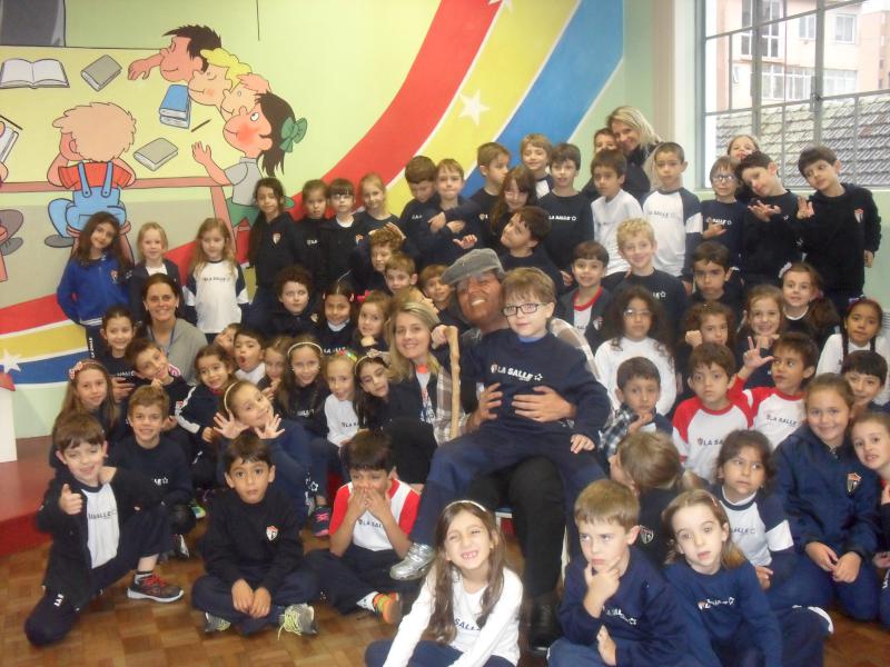 É sim! Neste momento inicial do processo de alfabetização, o Seu Alfabeto dividiu sua sabedoria com os pequenos, auxiliando-os a construírem o conhecimento de maneira lúdica. A criançada adorou a festa e cantou o "Parabéns" com muita empolgação!