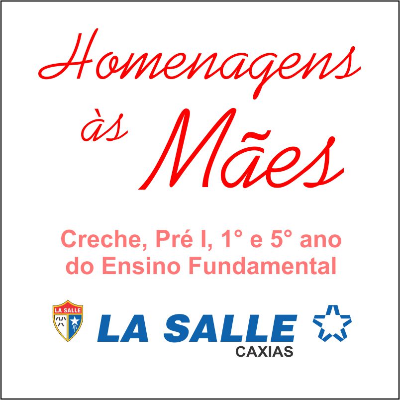 Parabenizando desde já todas as mamães do La Salle Caxias, trazemos hoje a primeira parte das homenagens de Dia das Mães. Confira os vídeos e fotos das turmas da Creche, Pré I, 1° e 5° ano do Ensino Fundamental!