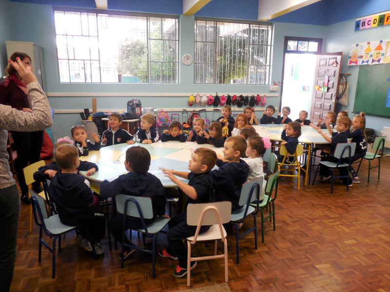 Muitas cores e formas ilustraram o recém finalizado Projeto Aquarela, das turminhas da Creche. Entre seus objetivos estavam a identificação de cores e formas geométricas, o desenvolvimento da motricidade fina e ampla e das percepções visuais e táteis, trabalhados, então, através da culinária e da arte.