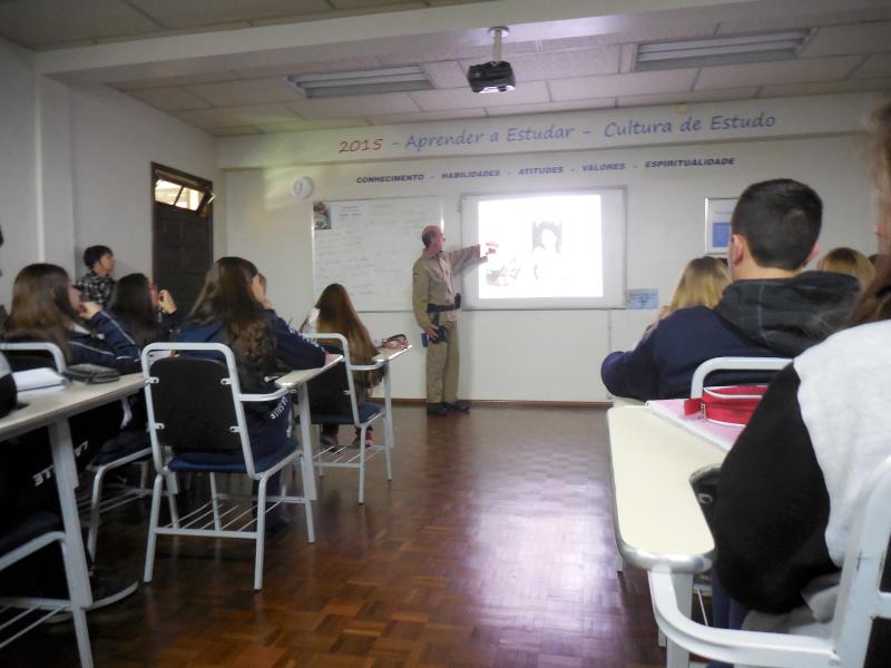O Terceirão recebeu, no mês de junho, o policial Sergio Milesi para uma palestra especial. Sergio, Policial Rodoviário Federal e pai da aluna Grasiela Milesi, explicou tudo sobre o bafômetro, incluindo as leis que regem seu uso, o funcionamento do etilômetro, que efetivamente faz a medição do nível de álcool no sangue, e o trabalho executado pela Polícia nas ruas e estradas do país. A professora Lílian, acompanhando as turmas, detalhou o processo químico que ocorre no interior do aparelho, complementando a apresentação. O La Salle Caxias agradece ao Policial Milesi pelo importante conhecimento compartilhado com os alunos!