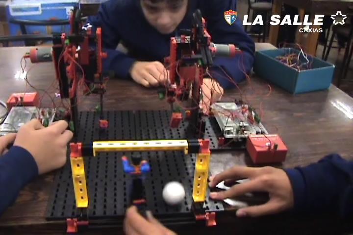 O módulo 5 da Robótica Educacional uniu a paixão pelo esporte à tecnologia dos seus modelos com um pequeno campeonato de chute a gol. Uma perna artificial, montada e programada para chutar uma bolinha de pingue-pongue, era controlada por um aluno, enquanto outro controlava o goleiro. Com as montagens preparadas, a mira afiada e o timing correto, o aluno André Mensch, da turma 81, foi o vencedor do torneio. No vídeo, os melhores momentos do campeonato!